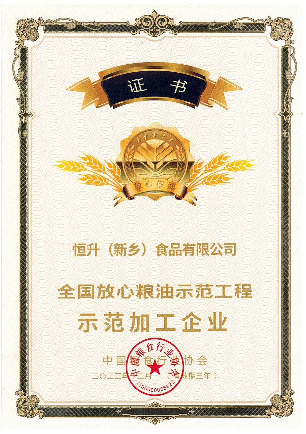 第十二批河南省放心糧油示范工程示范加工企業(yè)