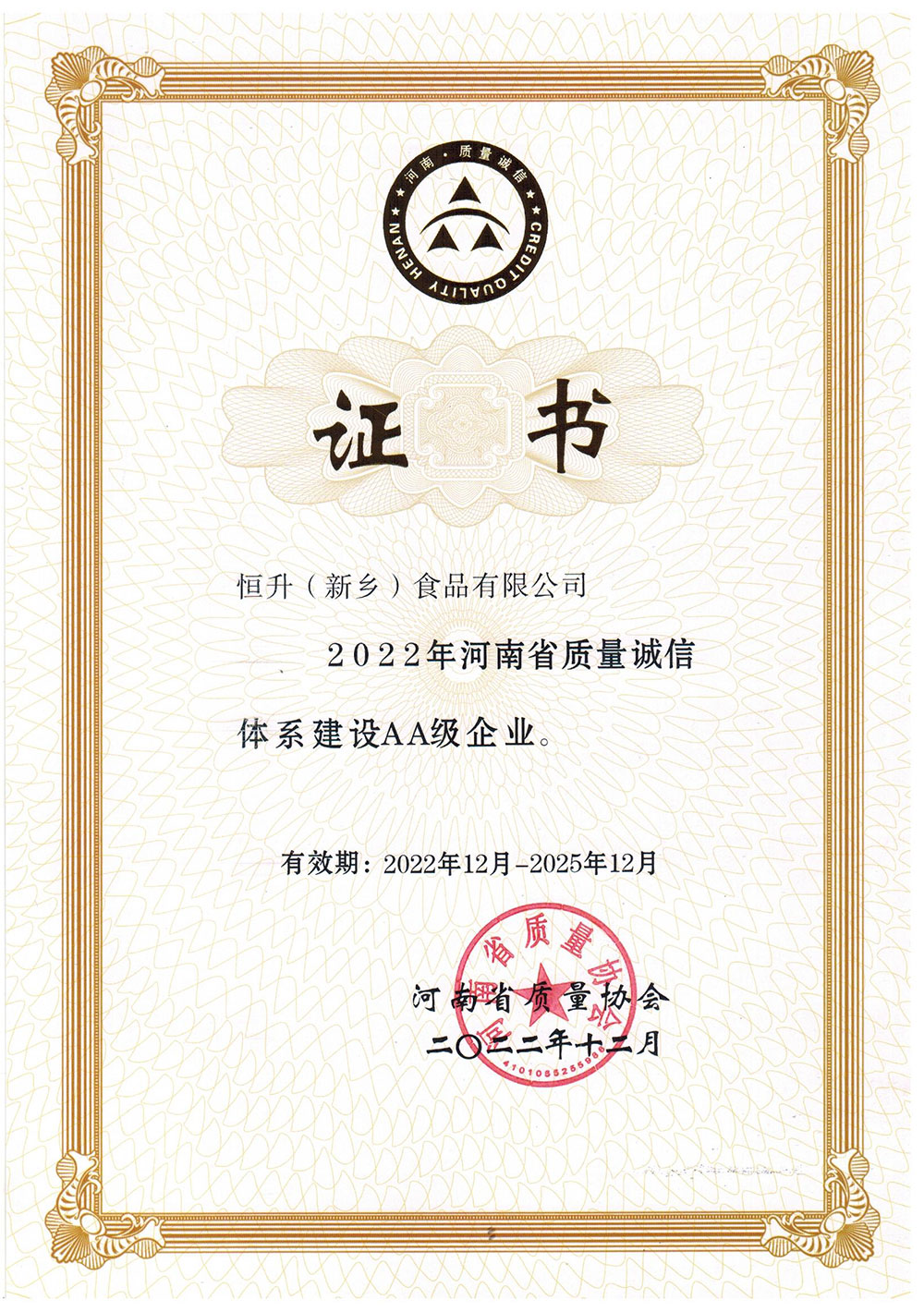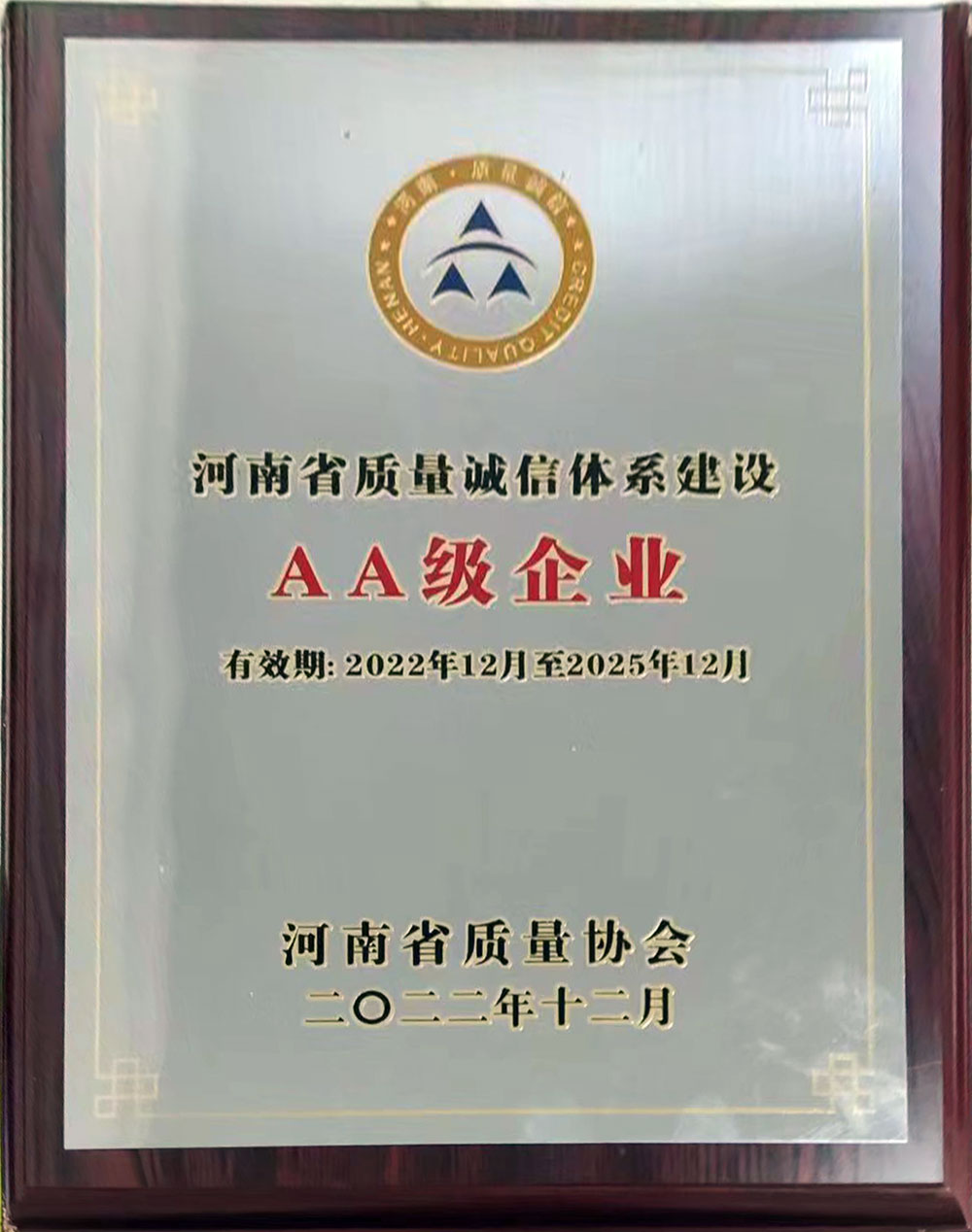 河南省質(zhì)量誠信體系建設AA企業(yè)證書-(中文)