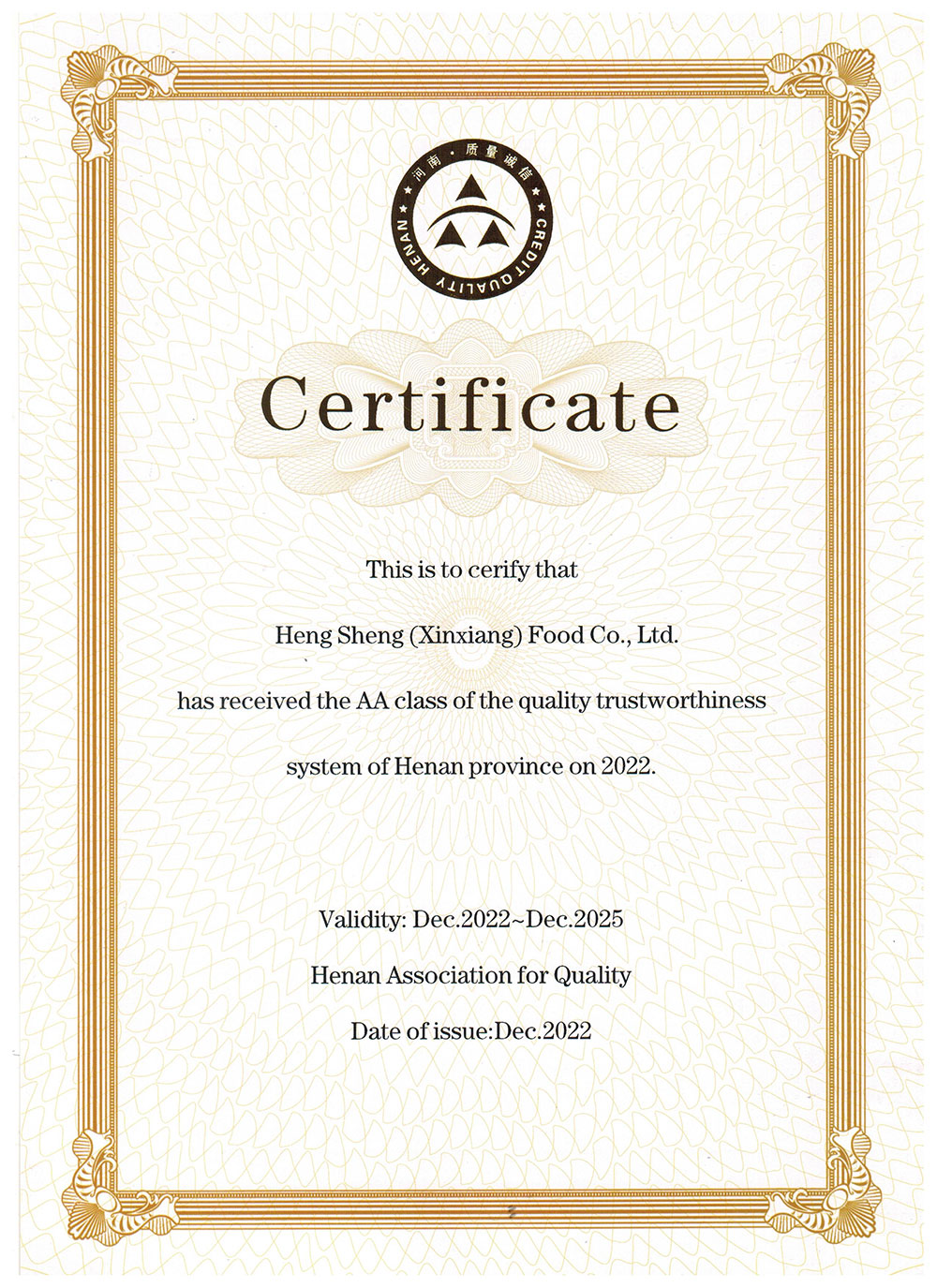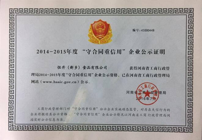 河南省質(zhì)量誠信體系建設AA企業(yè)證書-(英文)